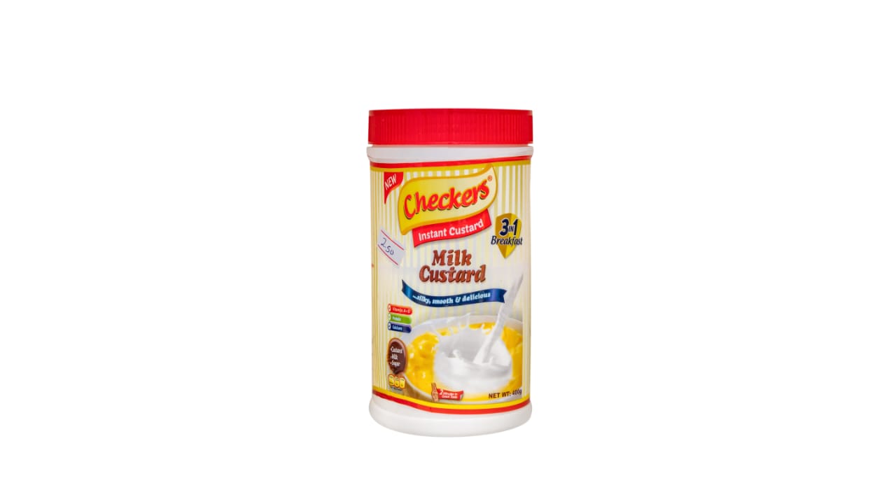 "Indulge in the creamy, smooth texture of Checkers Milk Custard, the perfect dessert for any occasion. Made with premium quality milk, this custard is rich, velvety, and packed with a delightful sweetness that will satisfy your taste buds. Whether enjoyed on its own, as a topping for your favorite pies or puddings, or mixed into a delicious fruit salad, Checkers Milk Custard brings comfort and joy to every spoonful. Easy to prepare and incredibly versatile, it’s a must-have treat for your kitchen.